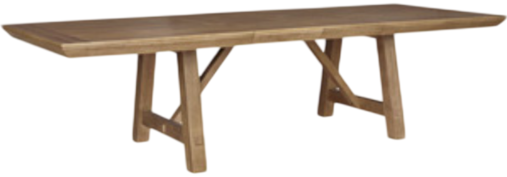 Rustic character with a dash of refinement. Outfitted with stunning hickory veneer and a natural wood-tone finish, this dining table celebrates the authentic beauty of wood. Smoothly extend the table when guests drop in, with two removable leaves that add impressive length when needed. A stylish trestle base lends a classically chic feel to the look.Read More