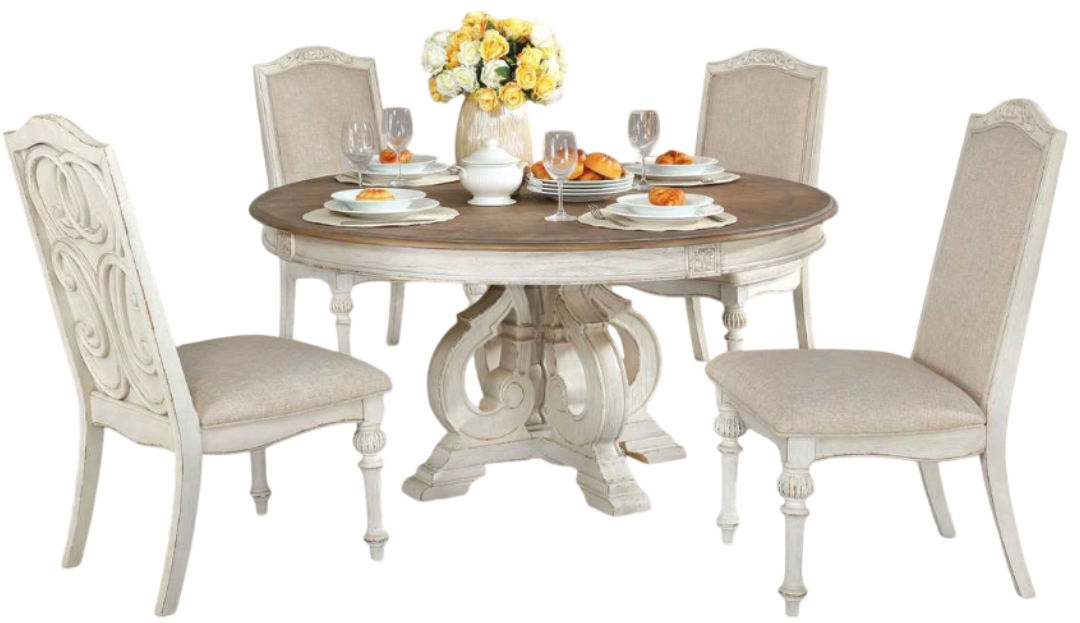 Beautiful wood inlay details create a grand statement with elegance galore. This sophisticated table features intricately carved crests along the skirt of table to accentuate its traditional inspiration.Read More