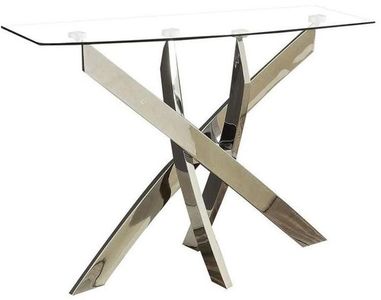 Modernize your living room with this table front and center. Chrome leg panels cross beneath the spacious table before splitting and rising up to the glass tops in sleek and distinctive contemporary design.Read More
