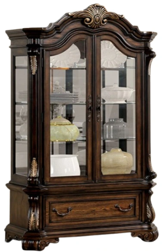 The Furniture of America® Leovanni Dark Brown Curio features a timeless design with rich dark brown finishes and intricate details. Perfect for displaying collectibles or fine china, this curio adds elegance and sophistication to any living or dining room with its stylish, sturdy construction.Read More