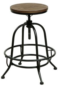 This counter height chair is designed with industrial features in mind, such as the sleek metal framework with foot rest and a smooth wooden height adjustable seat.