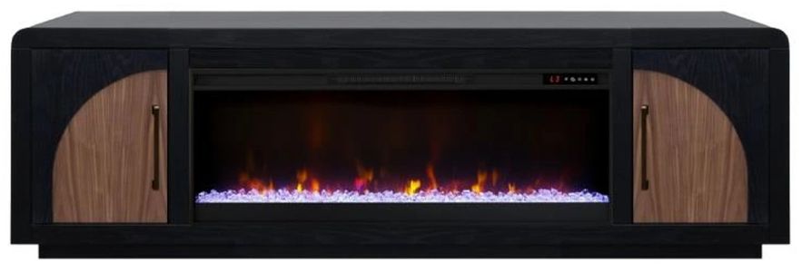Bring Home the Eclipse 82-inch fireplace TV stand for sophisticated, reimagined vintage style. Beautifully crafted from oak solids and veneers and walnut veneers, this Entertainment Center with Fireplace rests atop a crisp plinth base and features striking two-tone finish inlay arch panels on the doors that mirror the curves of the top corners.Read More