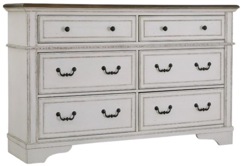 The Signature Design by Ashley® Blendon Brown/White Dresser blends contemporary and casual styles with its two-tone matte white finish and replicated sugarberry wood grain pattern. Featuring white knobs, splay legs, and open shelving, it offers both charm and practical storage.Read More