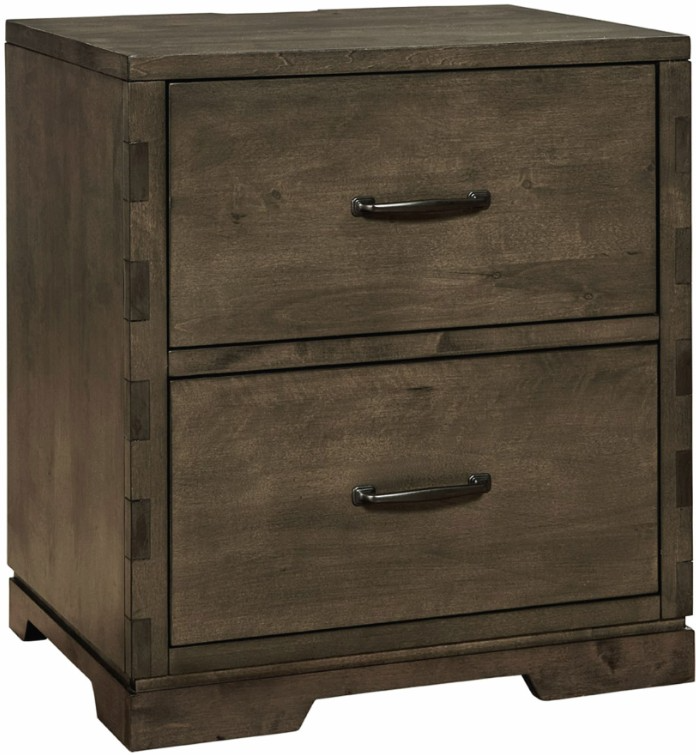 This nightstand features a modern, clean-lined design with a rich graphite finish and two spacious drawers. Built with durable wood and dovetail craftsmanship, it includes soft-close glides and a convenient charging station for added functionality.Read More